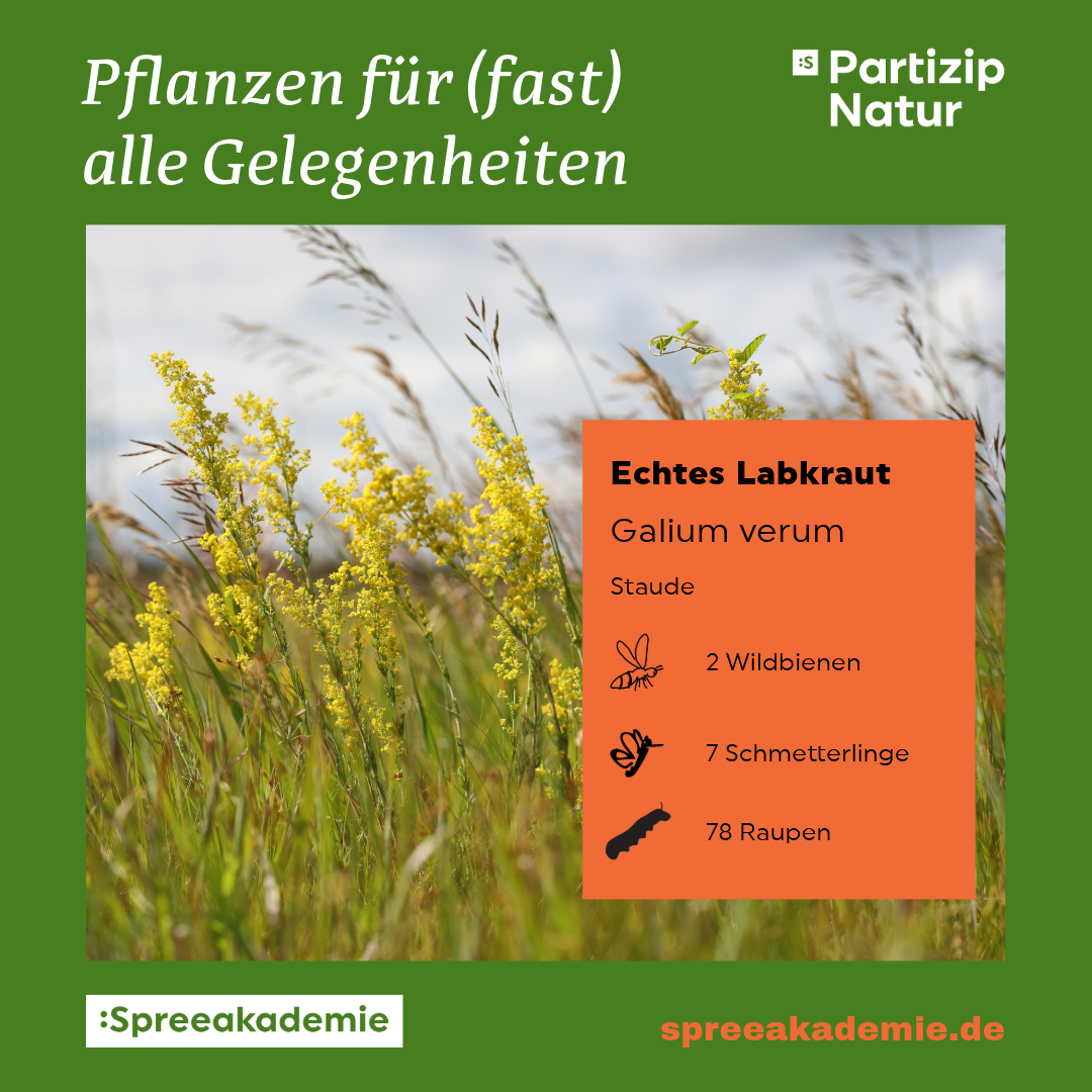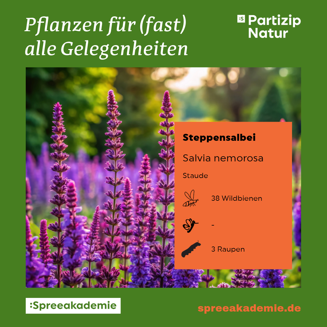 Wir haben für jede Pflanze die Anzahl der Wildbienen, Schmetterlinge und Raupen angegeben, die sie ernährt. So können Sie gezielt planen und Ihren Garten in eine blühende Oase verwandeln. Diese Informationen stammen von der Webseite naturDB.de, die viele weitere nützliche Hinweise zu diesen und anderen Pflanzen bietet.