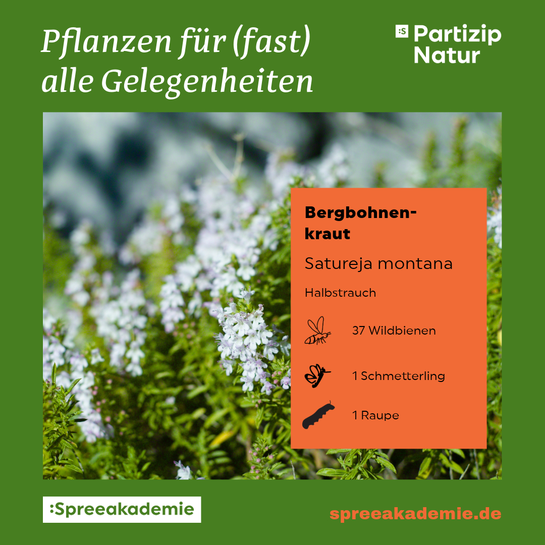 Die Auswahl an heimischen Wildpflanzen ist groß, und es kann schnell unübersichtlich werden, wenn man die zahlreichen Kulturpflanzen und eingebürgerten Arten einbezieht. Unsere Liste hilft Ihnen, die richtigen Entscheidungen zu treffen. Wir haben sowohl heimische Wildpflanzen als auch gut angepasste Neophyten wie Thymian, Dost und das spätblühende Bergbohnenkraut berücksichtigt, die einen hohen ökologischen Wert für unsere Kulturlandschaft haben.